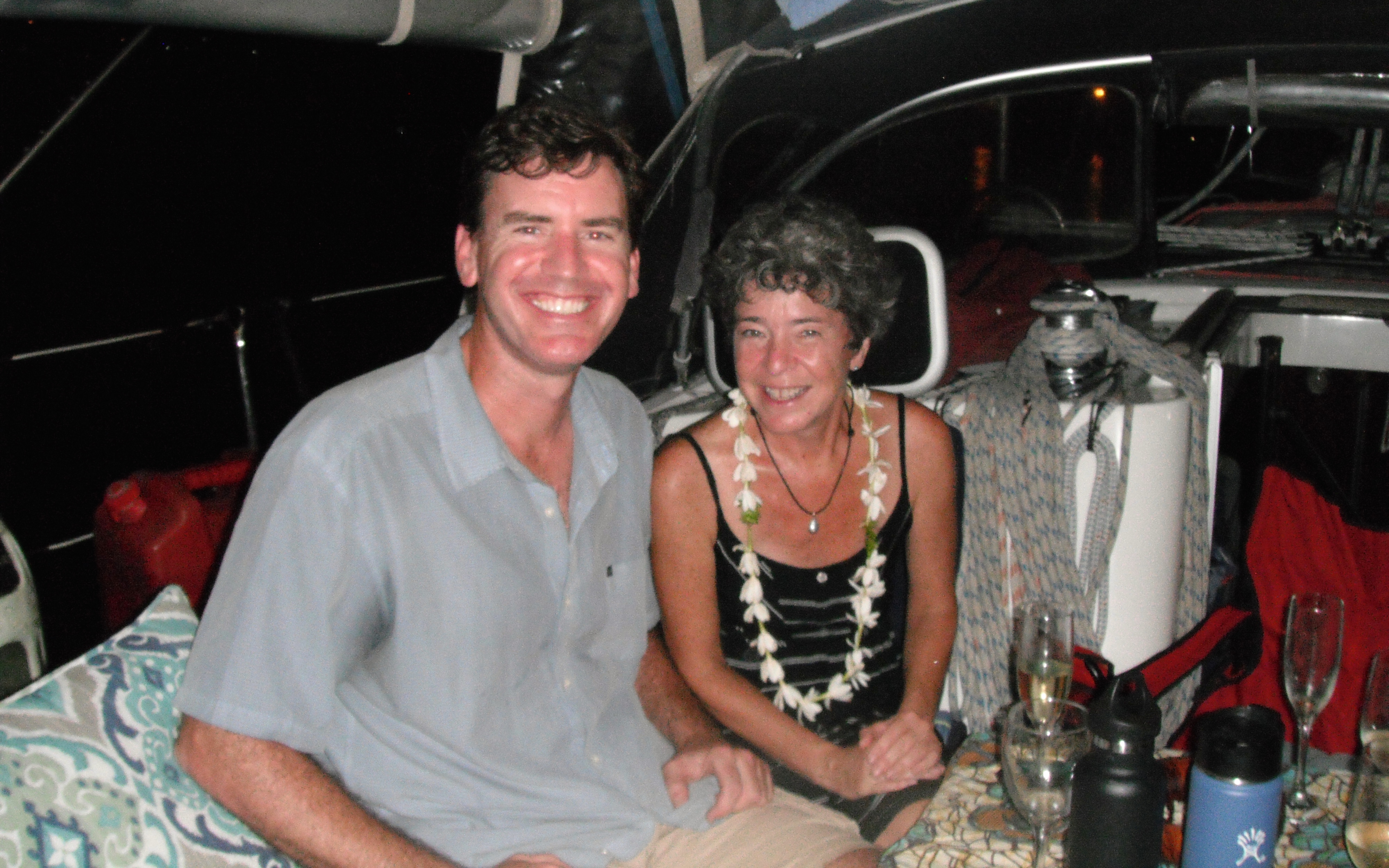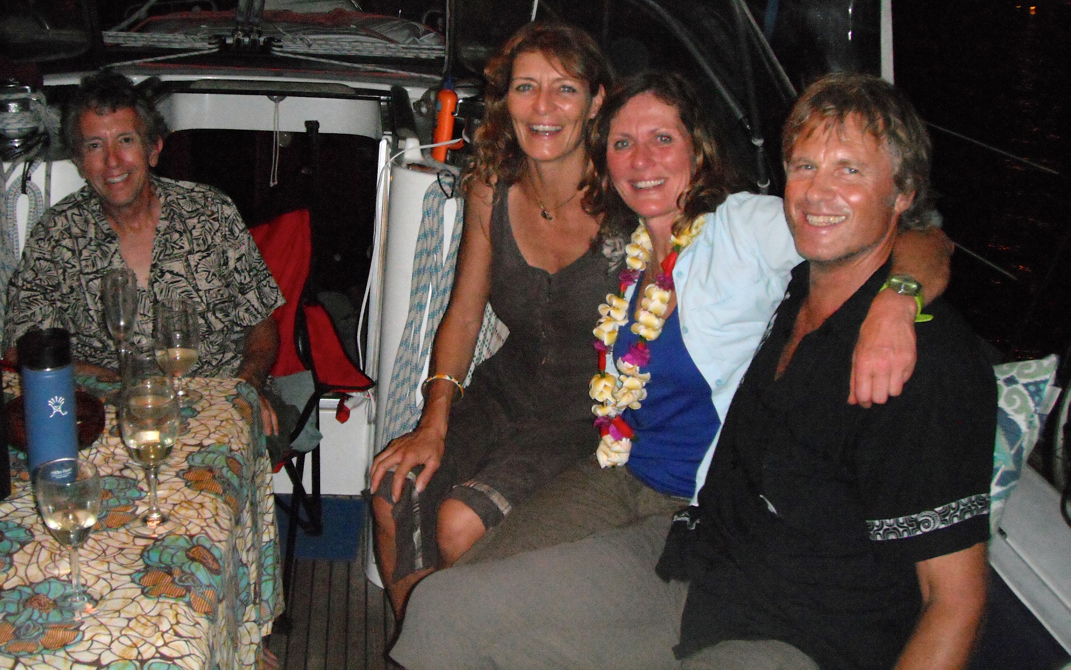 (5) Friends and a Birthday – We were blessed to be surrounded by friends in the anchorage: a friend of the Captain’s from long ago (SY Pa Pa Ya Ga), three friends we met in 2013 (SY Kril, SY Pitufa, and SY Yum Yum) and two friends we met this year (SY Ruby Slippers and SY Romany Star). SY Irie was also in the anchorage, but unfortunately, Mark and Liesbet were not on-board :-(. I had a birthday and the Captain threw me a lovely birthday celebration, serving my favorites; a pan of lasagna, an apple tart, and a gorgeous keshi pearl. A few pictures of our fun with friends below.
