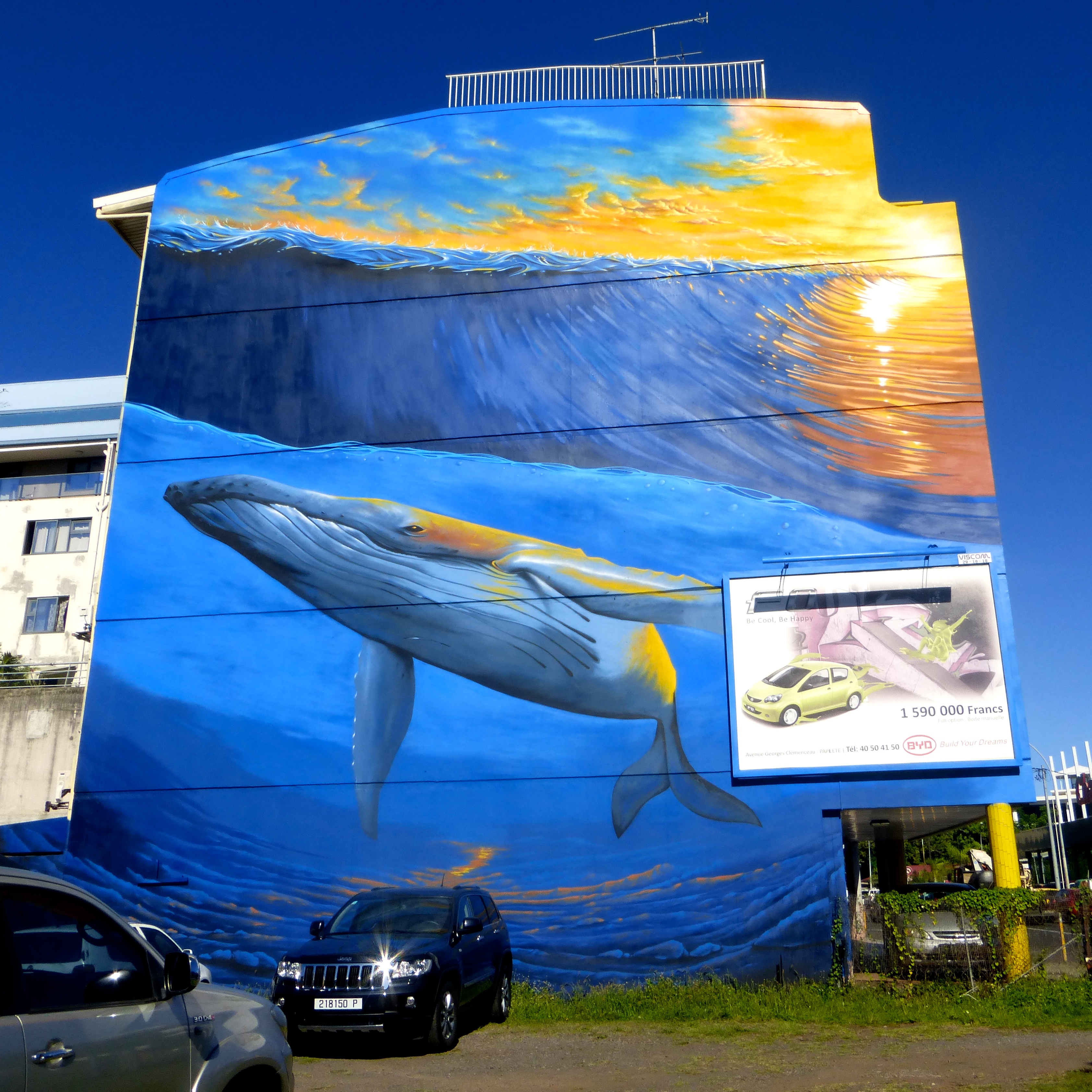 Car Advertised for Sail In Street Art Created By Seyb for ONO’U 2014 – Tahiti