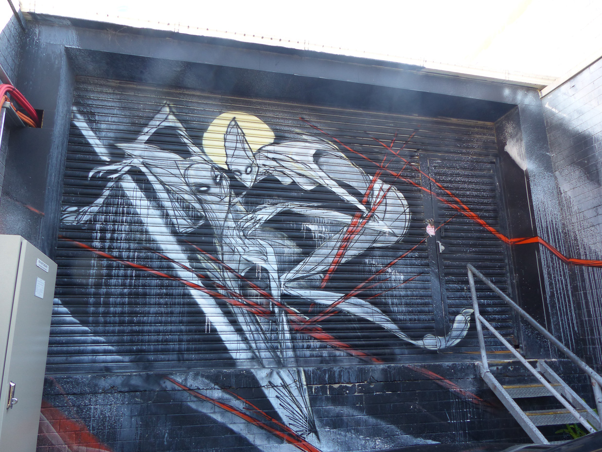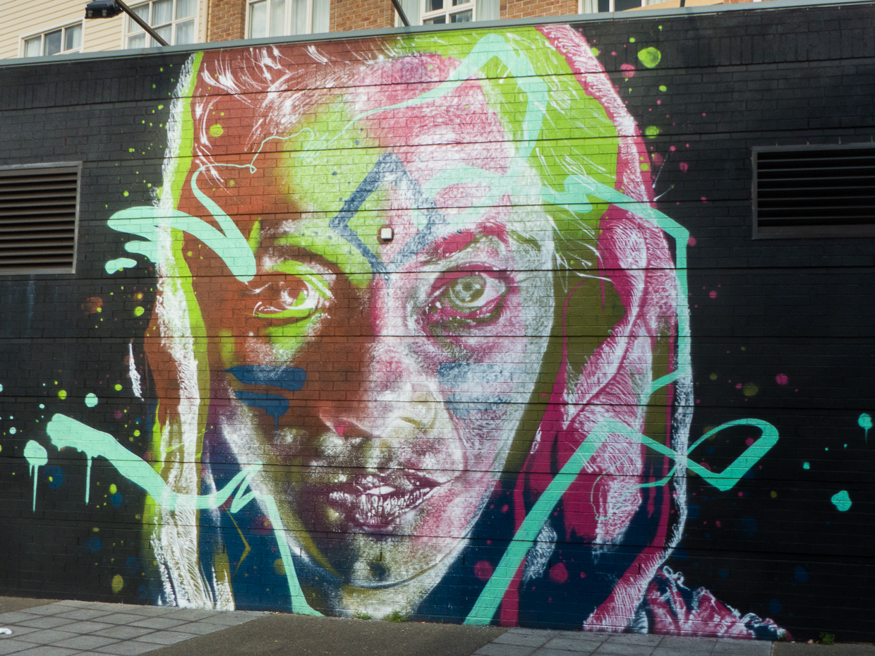 ‘Twas a nice combination of Local talent with some big names from around the globe. The ‘melting things’ were done by BMD, a famous NZ collective who just split (melted ?!?) after 10 years of working together…making the metaphor on that wall ironic. They are now Damin Radford Scott and Andrew J Steele. If you click on their names in this comment you can see their solo accounts on Instagram